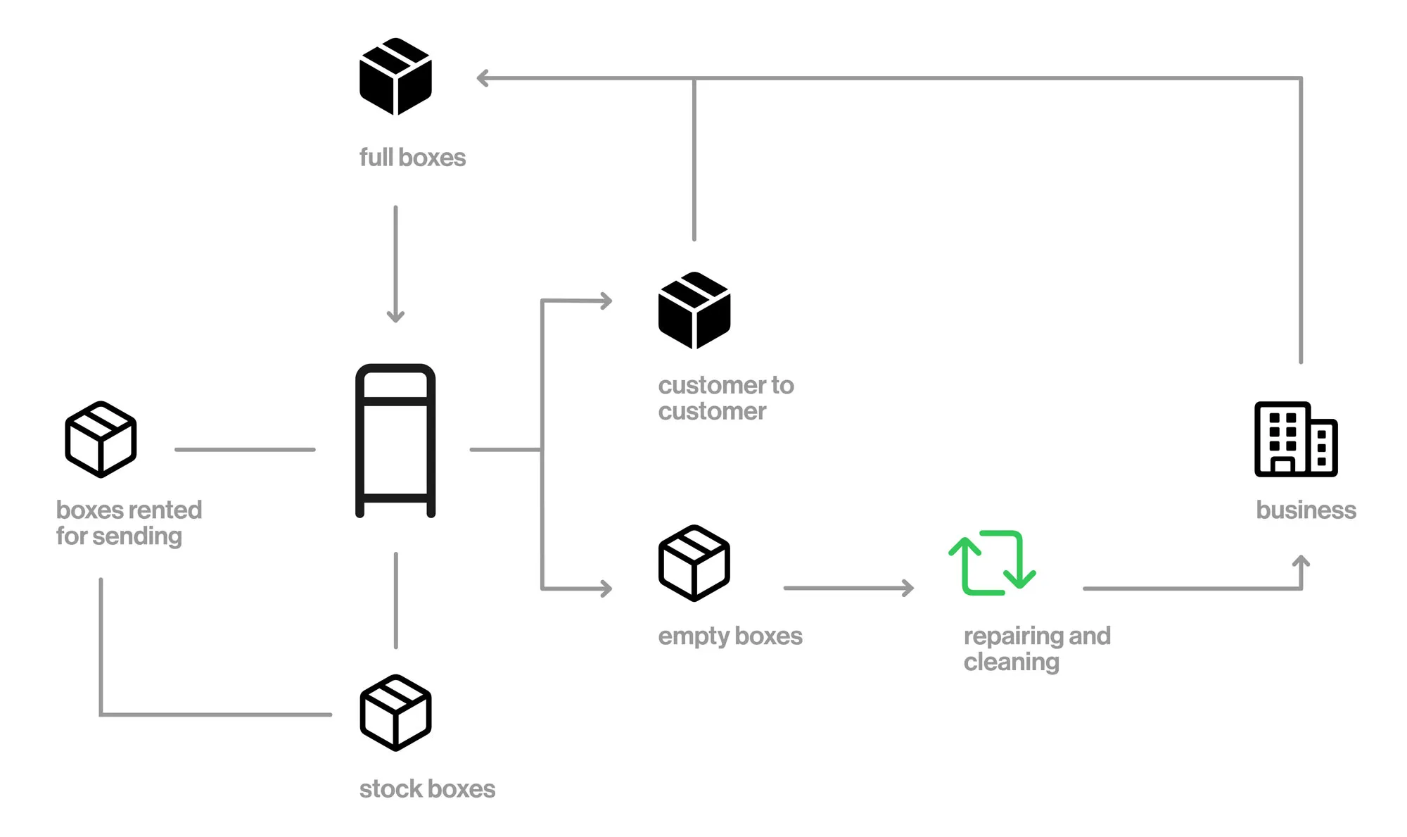 a new delivery system with reusable boxes was synthesized by going through all the possible scenarios for a last mile delivery.