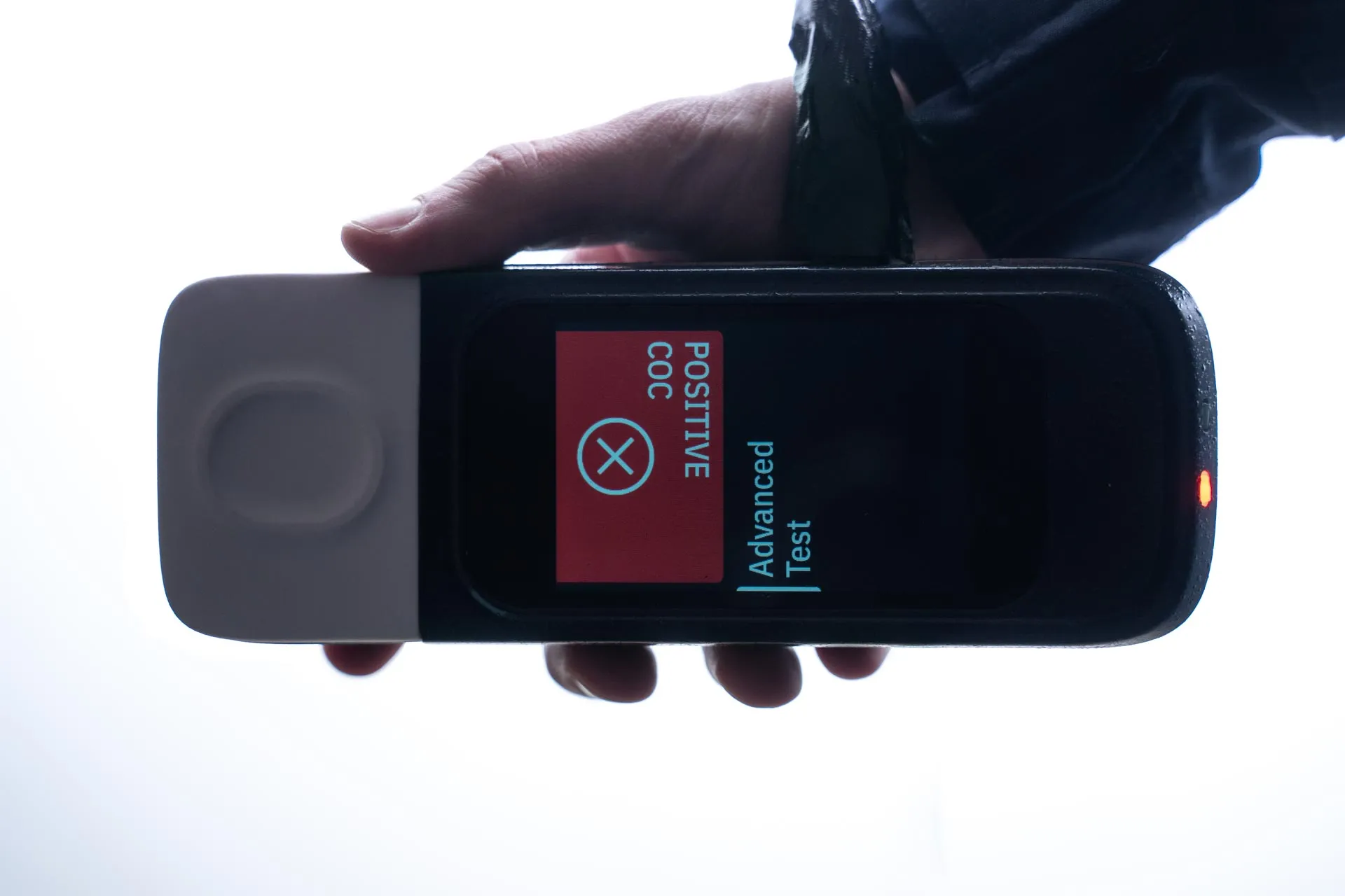 after the analysis is complete, a pre-indication of the test result is displayed only to the police officer on the back of the device. this allows the officer to maintain control of the situation and keep unforeseen reactions under control.