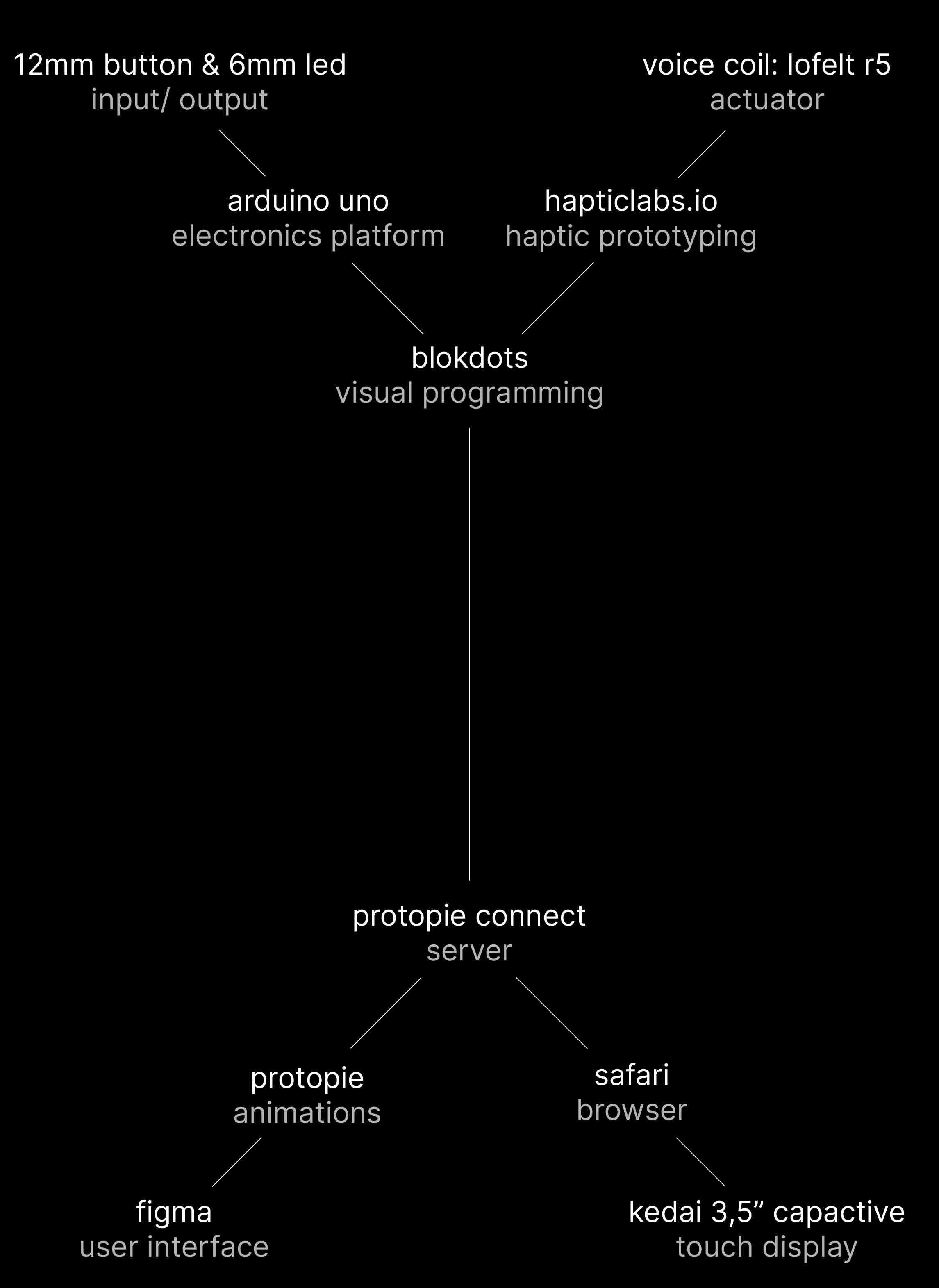 the level of detail of our prototype was only possible through the applications blokdots and hapticlabs. in this project i used an arduino and haptic components for the first time. the two programs allowed me to prototype different directions quickly and easily without any previous knowledge.
